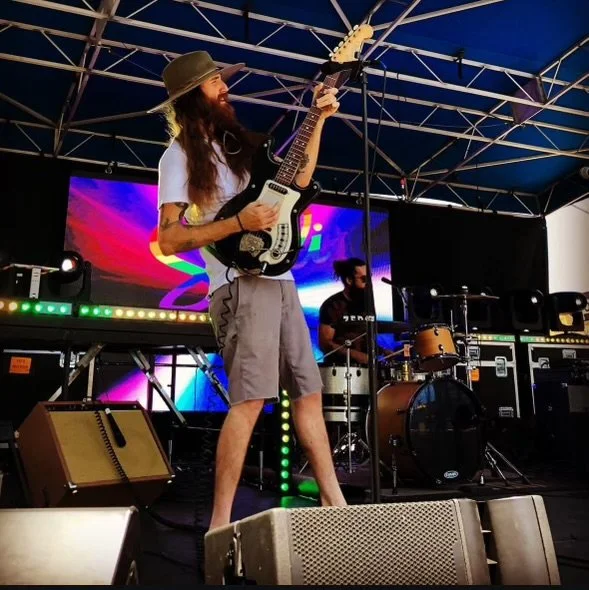 is a multi-instrumentalist from San Diego who has played in various local and touring bands for the past 15+ years, covering many different genres including reggae & country. Playing guitar with Akayaa since the summer of 2021, Tyler originally joined as a sub for band member Scott Inumerable.